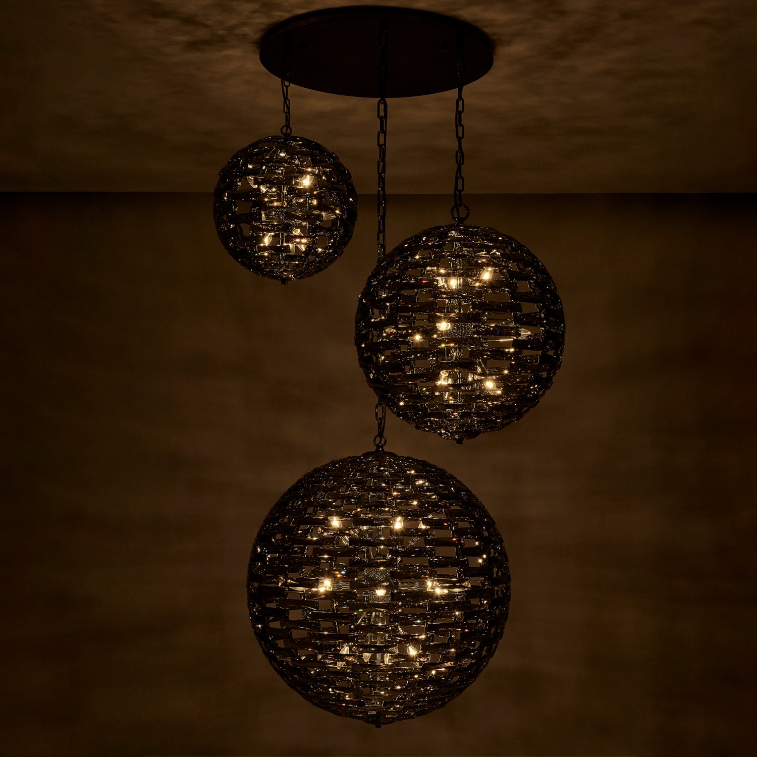 The Alta Collection is made of many crystal bars carefully arranged to make a perfect sphere crystal diffuser. Inside the Black Nickel frame, a light sputnik cluster adds an inner layer. The Alta is a great centerpiece in any room.