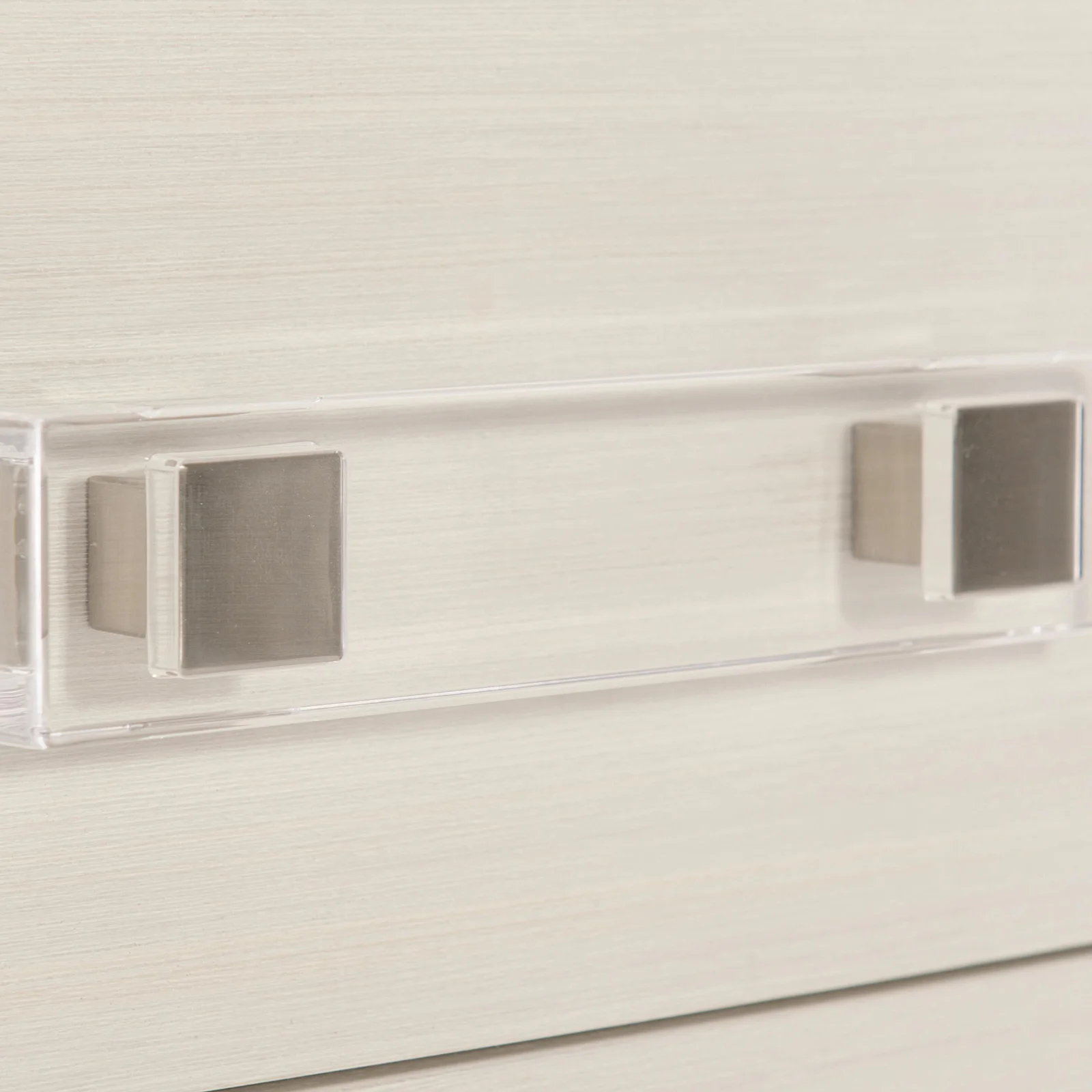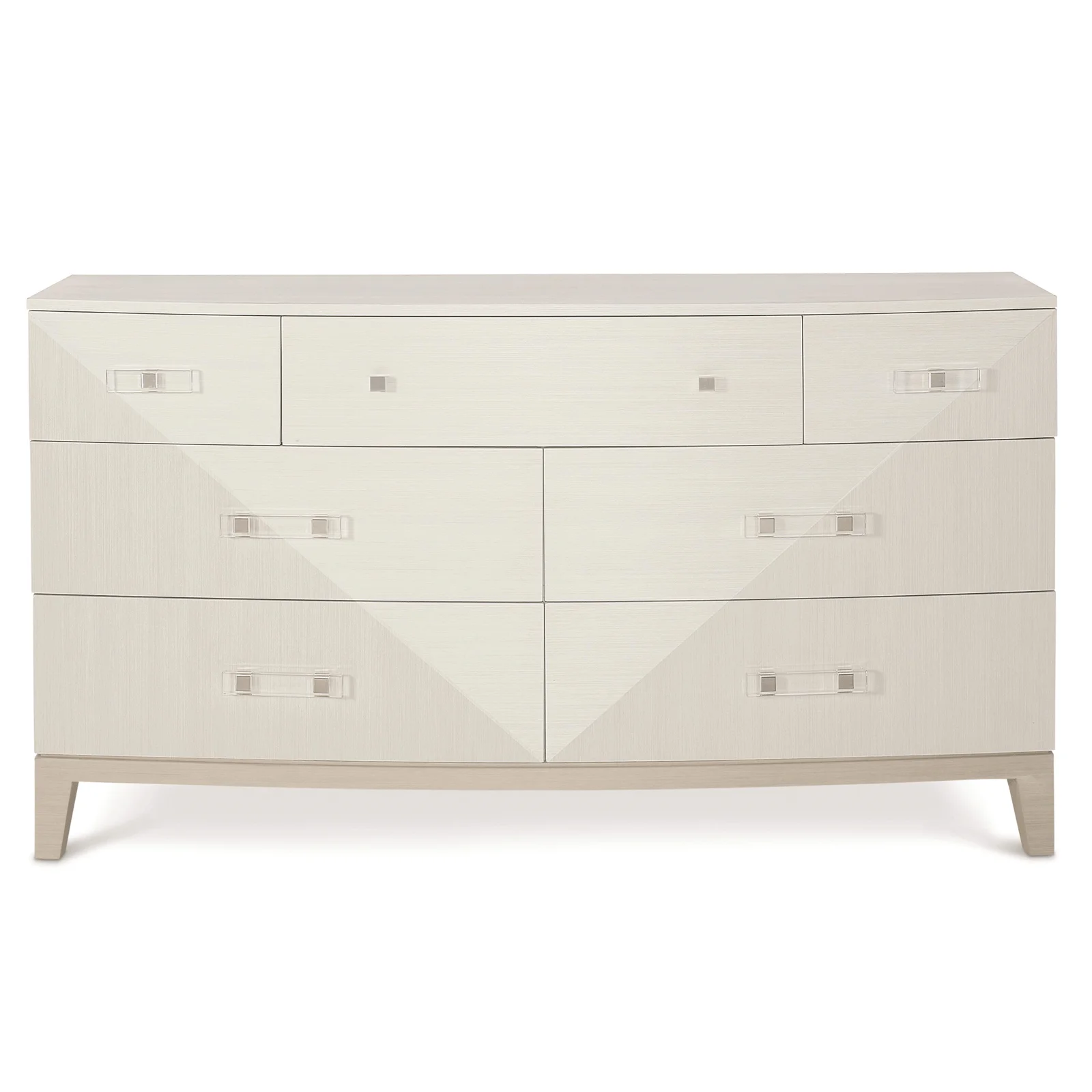 This dresser offers a unique material story, blending veneers with acrylic and metal accents in a clean, sleek form.
