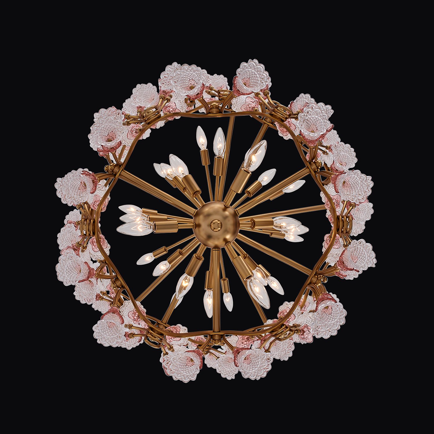 Introducing the Bella Collection, where the charm of bygone eras meets contemporary craftsmanship. These exquisite lighting fixtures draw inspiration from the elegance of a crown of flowers, merging Art Nouveau and Art Deco influences seamlessly. The fixtures boast intricate clusters of glass flower accents, crafted from clear and rose molded glass, embodying the sophistication of Allegri Crystals renowned artistry in metalworking and glassmaking. The robust steel construction ensures durability, while the Antique Brass finish adds a touch of refined grace. Designed with easy-to-replace glass components, Bella fixtures blend beauty and practicality, making them an exquisite addition to any space.