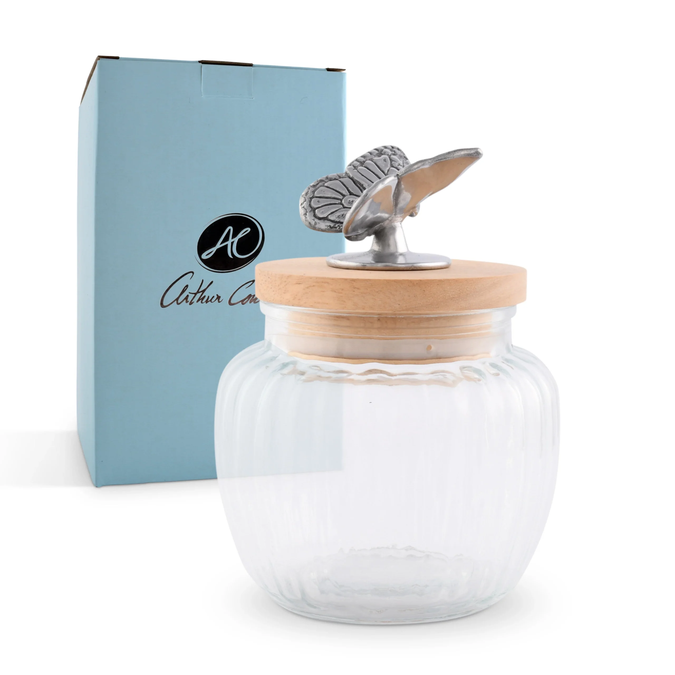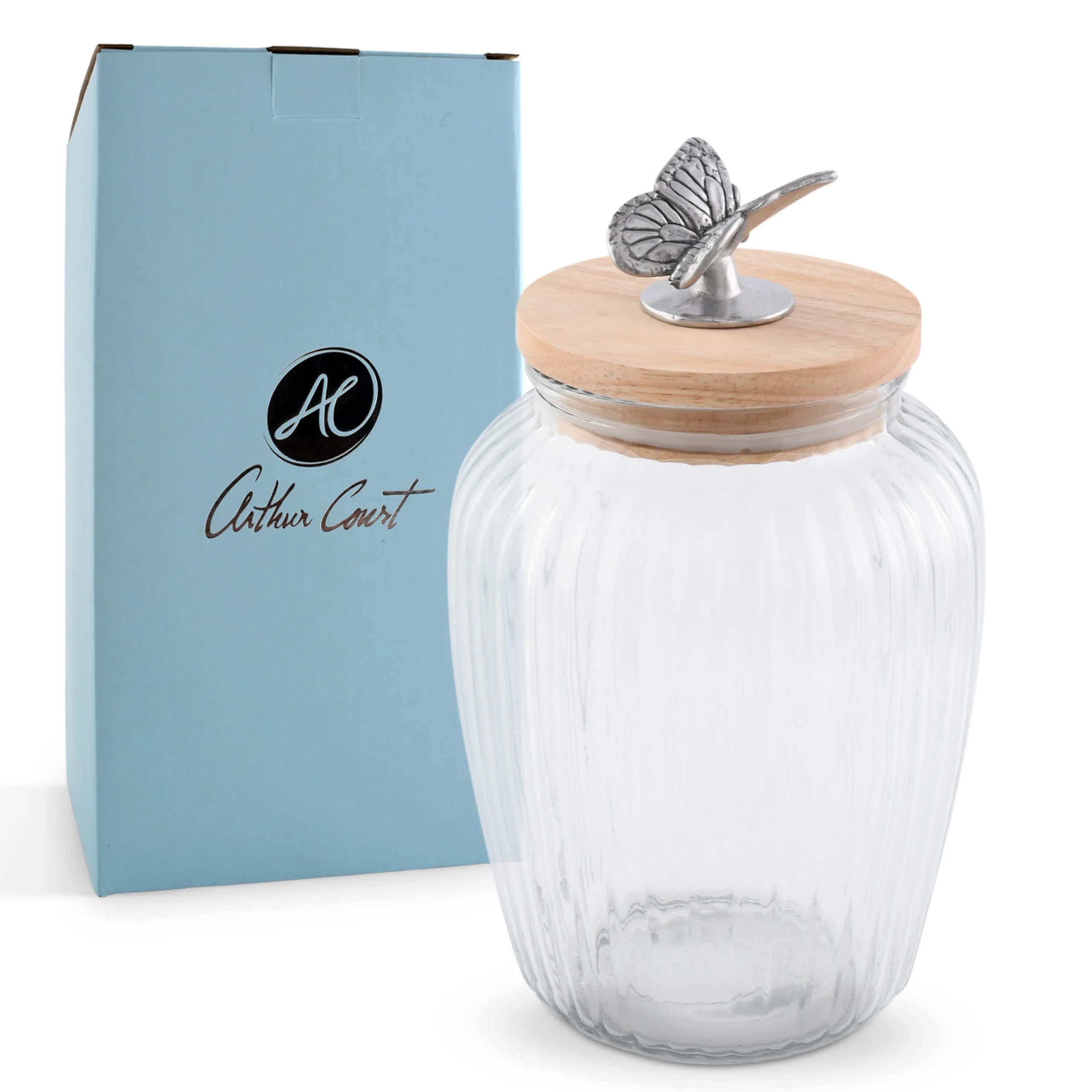 + Free ShippingAdd a touch of elegance to your kitchen decor or make someone special smile with the perfect gift with this Elegant Butterfly Glass Canister from the Arthur Court Butterfly Collection for Entertaining and Gifting. The intricate butterfly design adds a whimsical touch to this functional Butterfly-Themed Kitchen Storage Solution – Arthur Court. Its crystal-clear glass body elegantly displays your stored items, while the butterfly adorned lid guarantees a secure seal. Embrace the fusion of artistic design and practicality with this exquisite piece. With its substantial size and solid construction, this glass canister is perfect for storing cooking ingredients, sweets, or even non-food items. Enhance your home with the beauty and utility of this unique canister today.