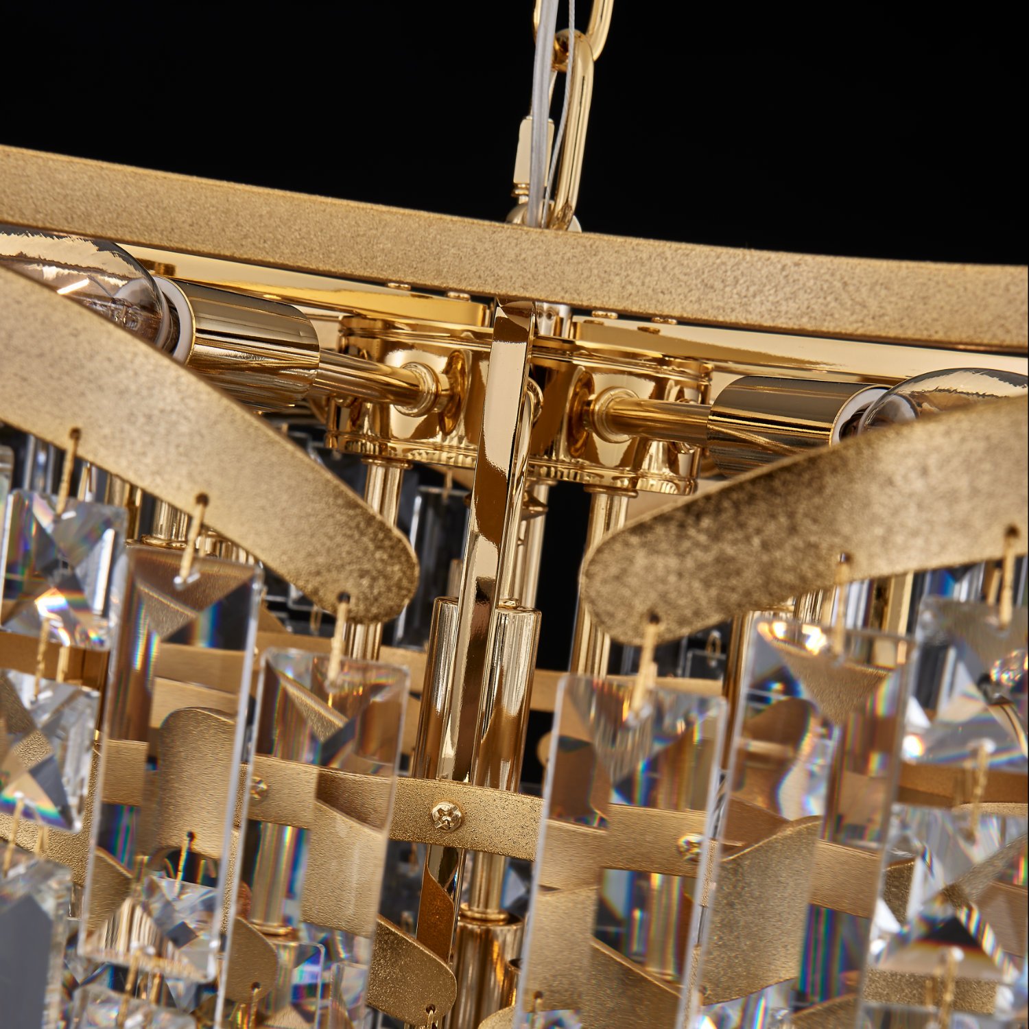 + Free ShippingThe Cadere Collection captivates the eye and sparks intrigue with its mesmerizing visual texture. Drawing inspiration from cascading waterfalls, this collection showcases vertical Firenze Crystals suspended from an undulating steel frame. Elegantly finished in gold, it is both stunning and thought-provoking.