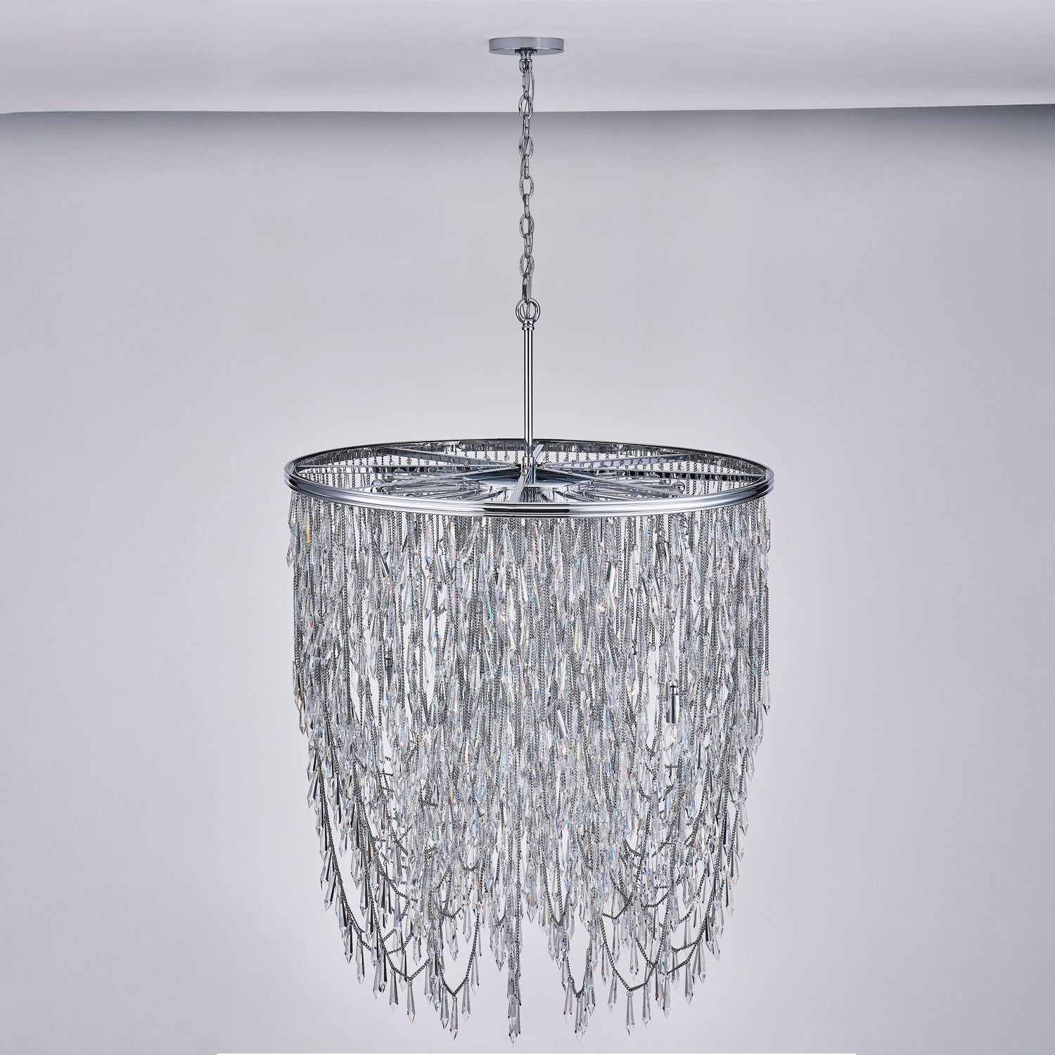 + Free ShippingOrganized randomness of fringe draping and gravity creates the shape of Frangia. Chains act as the support for the Crystal’spears for a boho glam vibe. Offered in Allegri’s exclusive Polished Chrome or Brushed Champagne Gold Finishes.