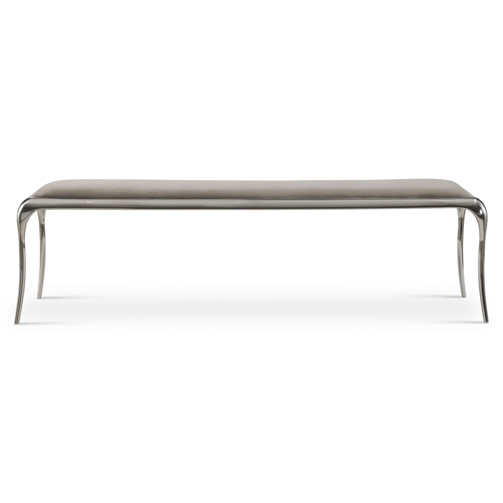 Metal flows into a curvaceous modern form for the frame of this bench.
