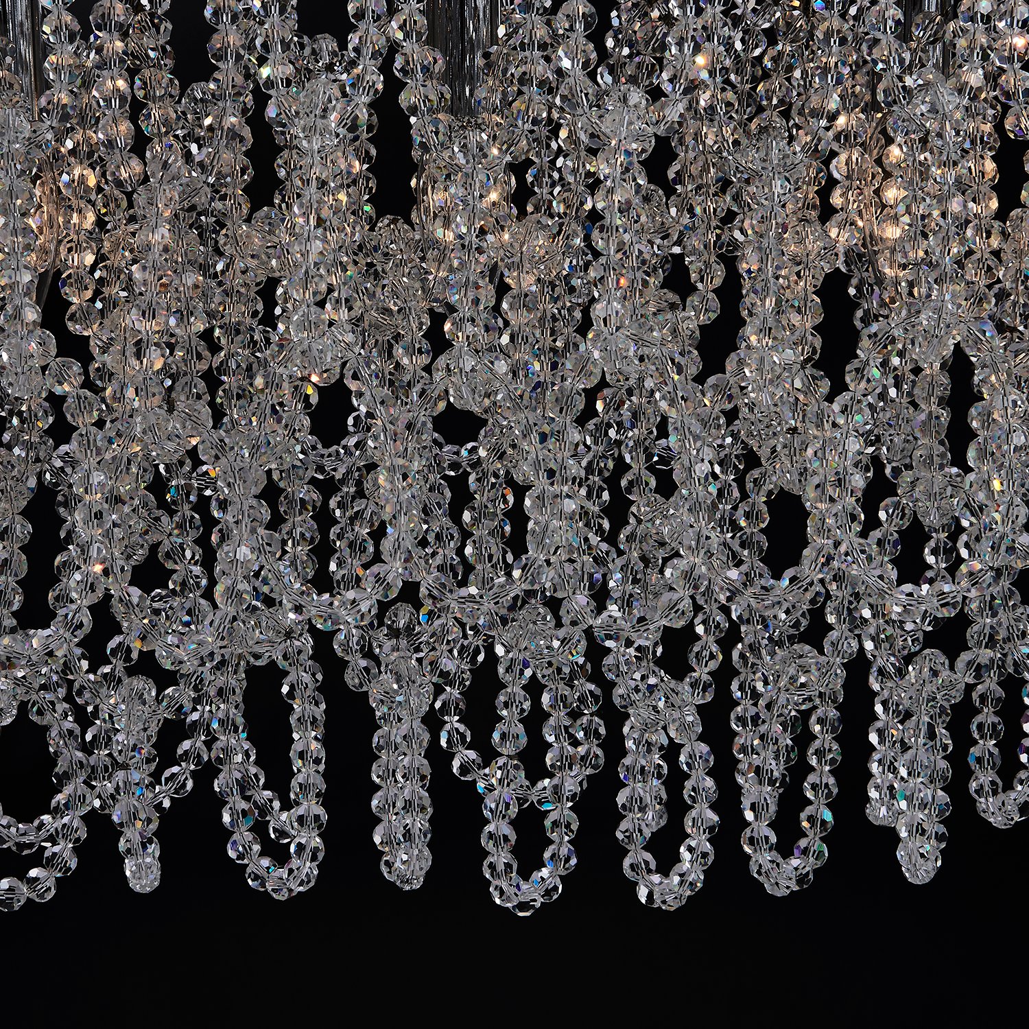 + Free ShippingTransform your living space with the stunning Loops Collection. These lighting fixtures, constructed from sturdy iron and adorned with exquisite Firenze crystals, draw inspiration from elegantly twisted bracelets and chains. The unique design features crystal pineapple beads on stainless steel cables, where the weight and gravity naturally influence thier elegant drape. Finished in Polished Chrome, these airy fixtures add a modern touch to any room, enhancing the ambiance with their refinded elegance and shimmering allure.