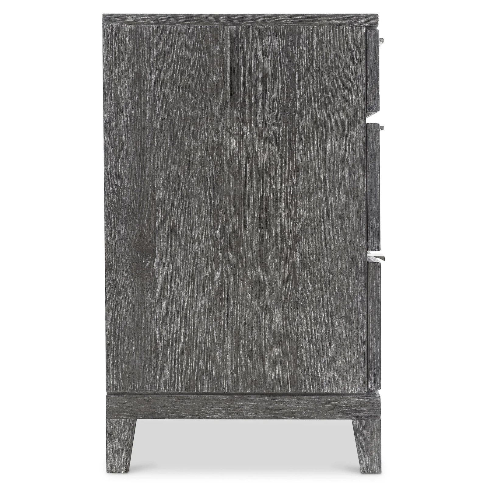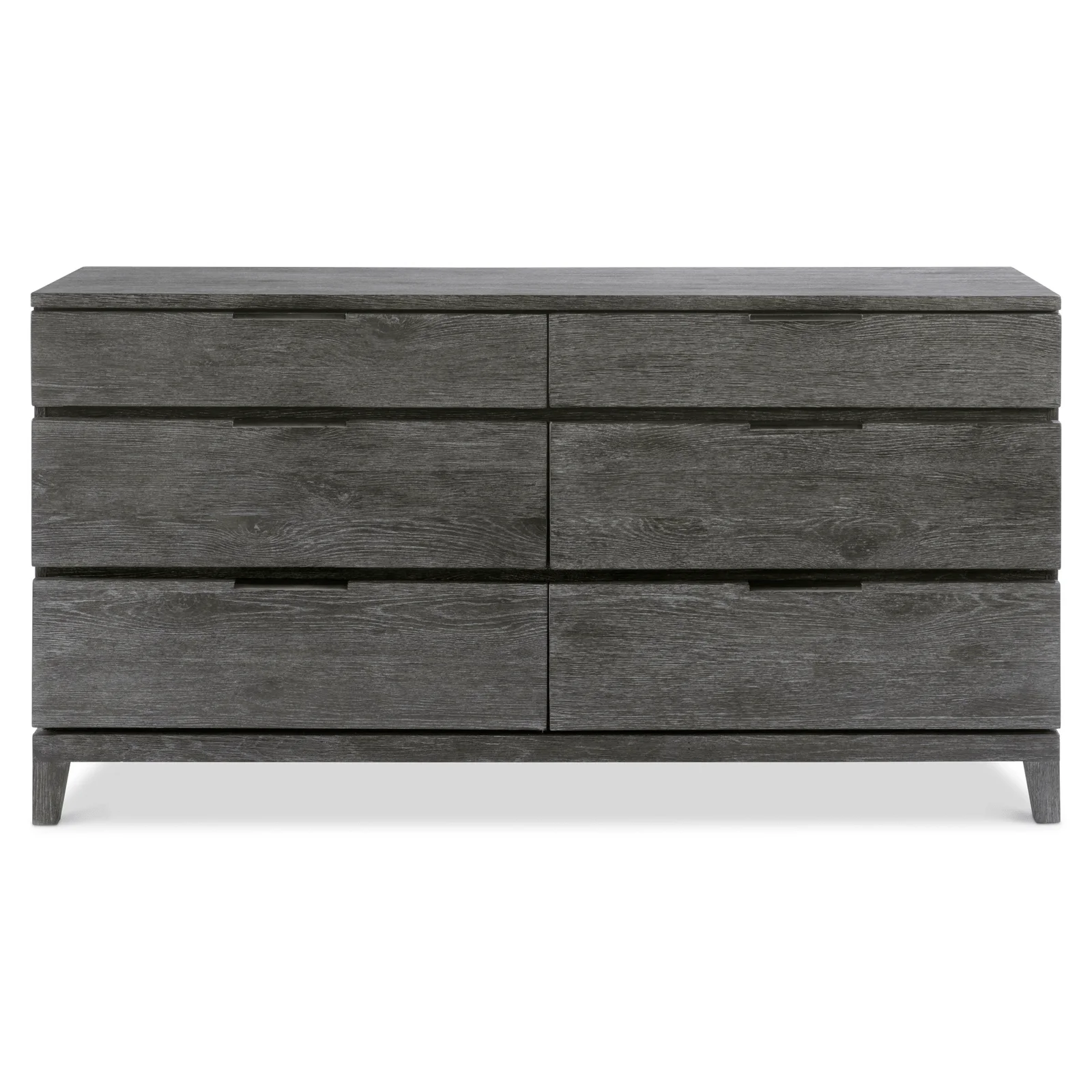 A traditional dresser design is updated with an earthy finish and sleek details.