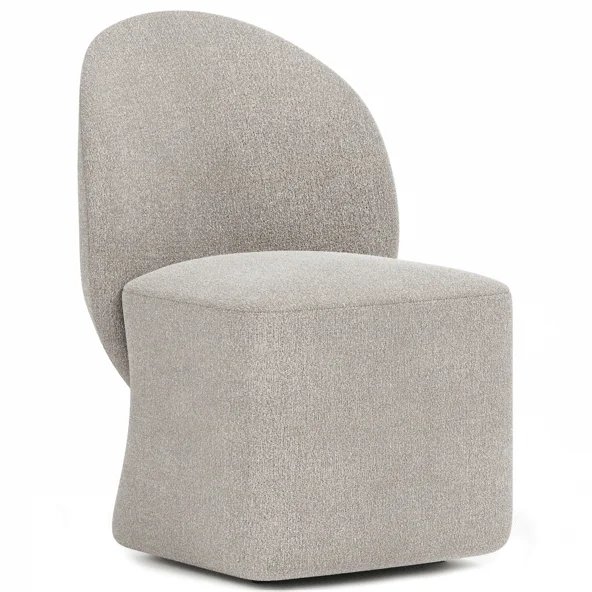 A rounded and curved back panel makes a bold statement on the Monolith side chair. It appears to float as it nests gently against the shaped and upholstered base. Hidden casters provide a smooth movement to and from the table.