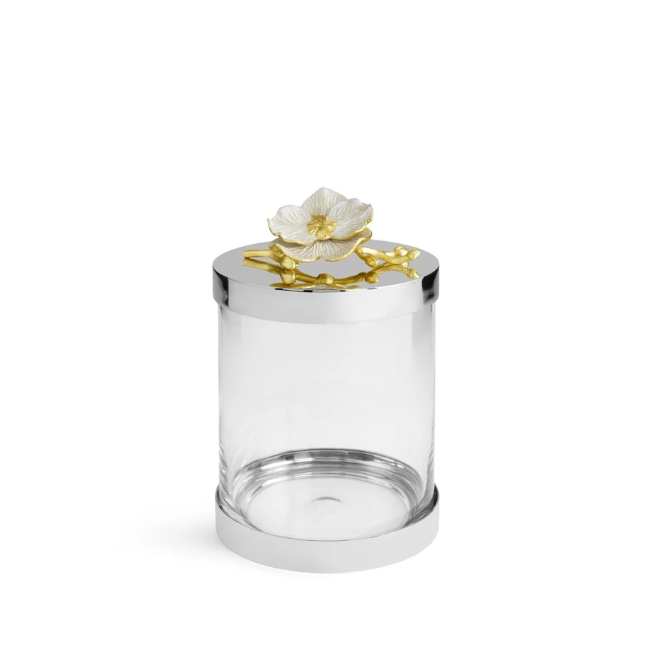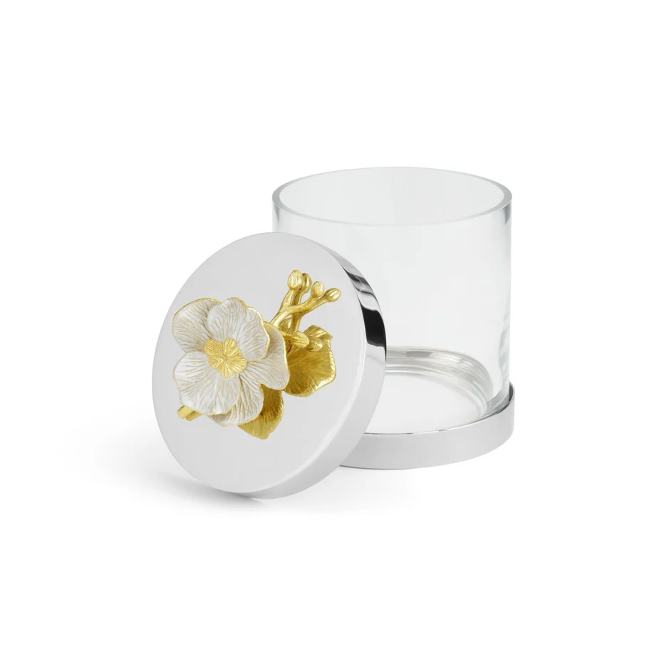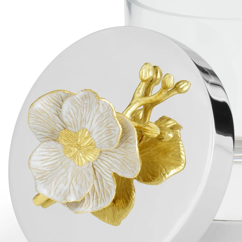 + Free ShippingThe Orchid Canisters are a refined blend of function and artistry, handcrafted in glass and finished with luminous nickelplate and delicate white enamel orchids. Symbolizing purity and grace, each bloom is sculpted with exquisite detail, transforming everyday storage into a statement of subtle luxury. Available in four sizes, these canisters bring elegance and timeless beauty to any space.