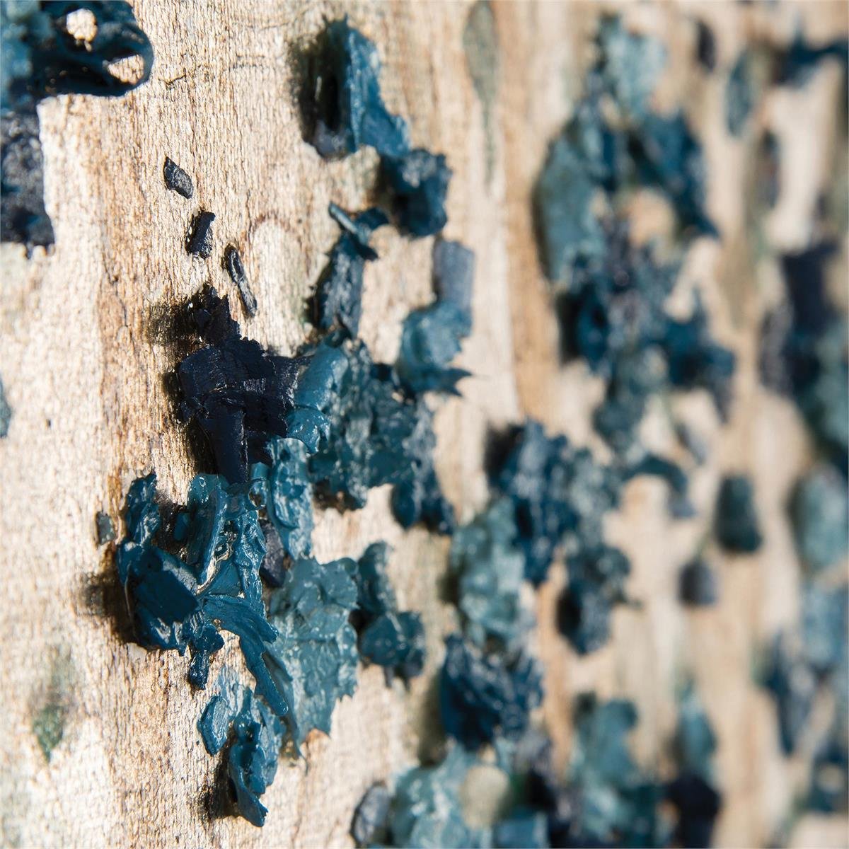 This textural example of Teng Fei’s work is an exquisite addition to a space. The silver-leaf background highlights the branches of the painting. The piece is framed with a black wood molding.