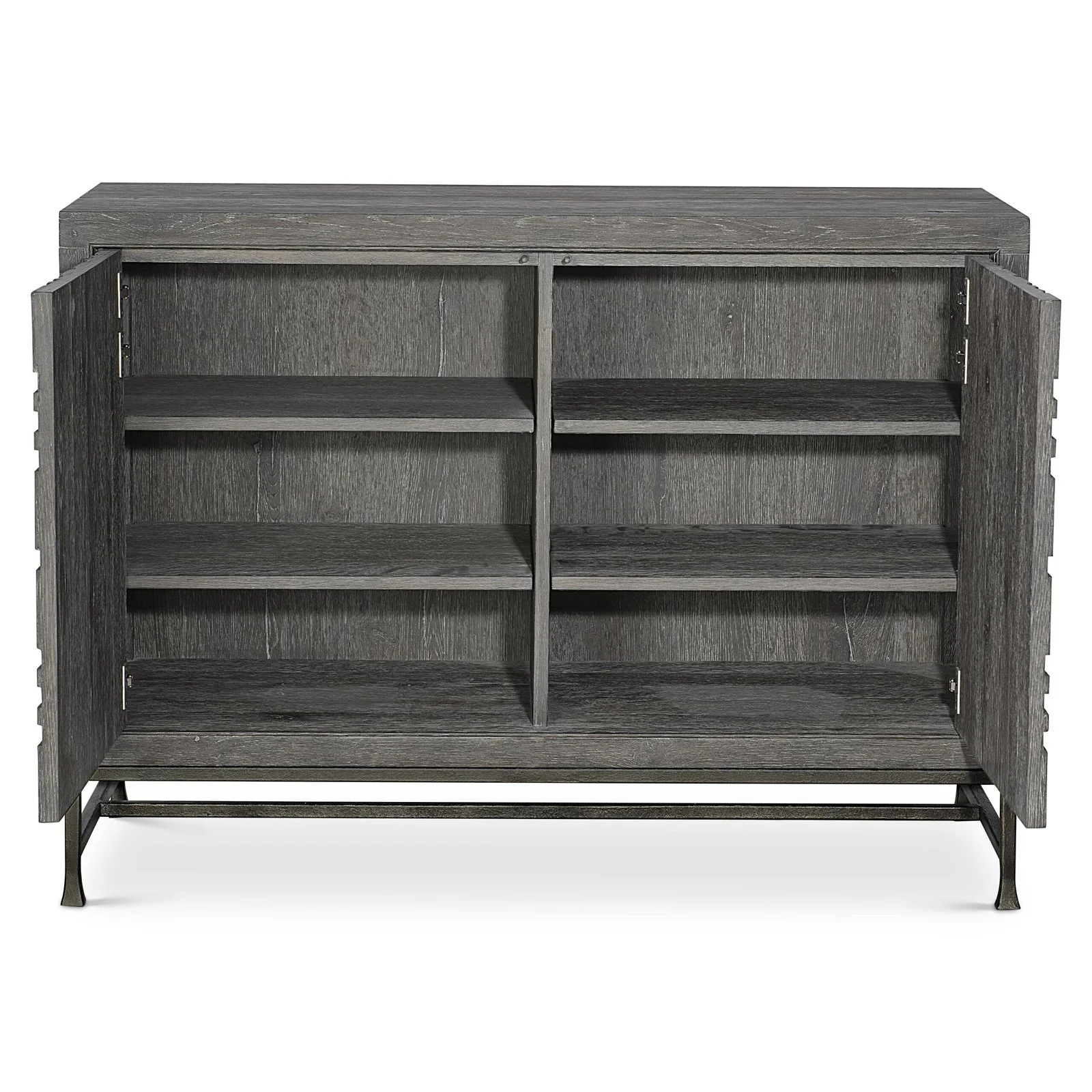 A raised geometric pattern offers the look of a city map on this chic modern chest.