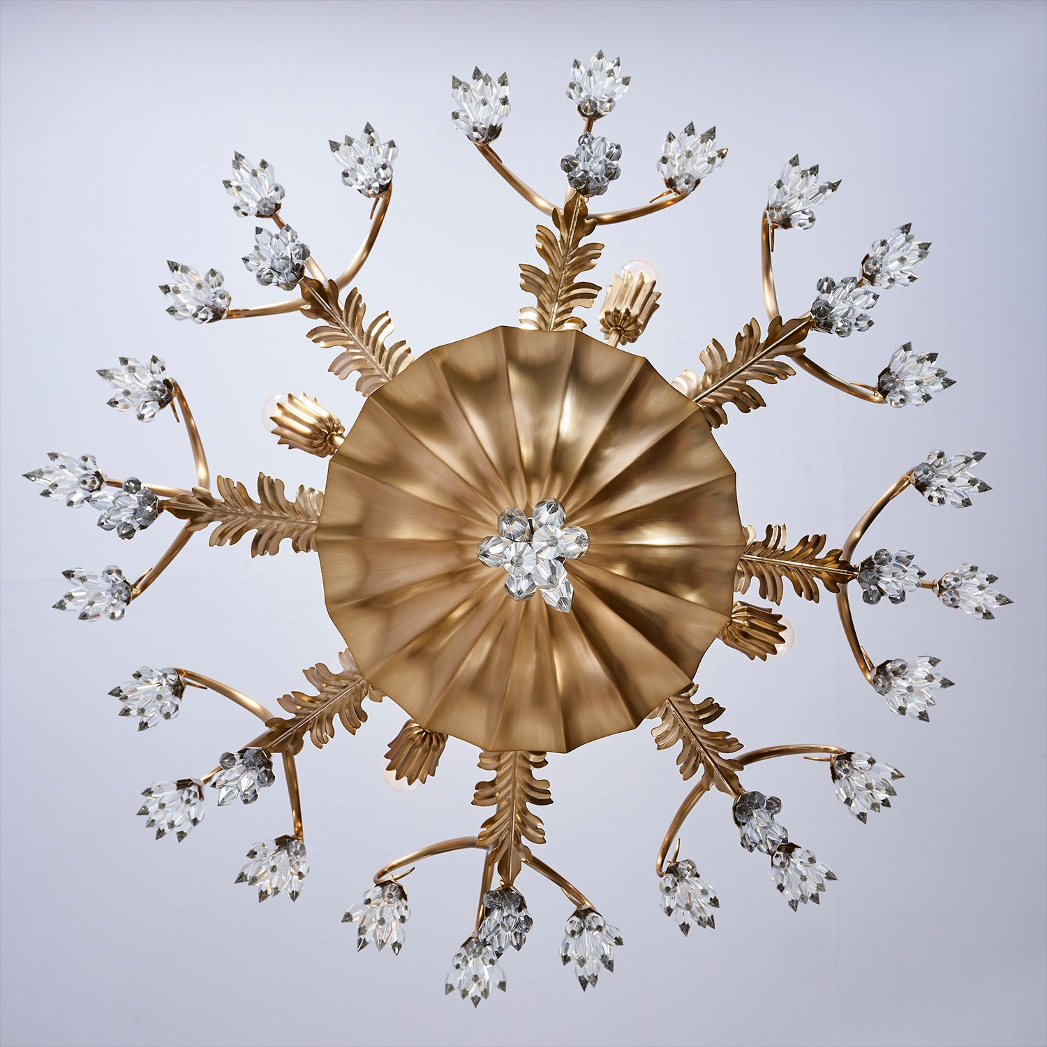 + Free ShippingElegant brass curves create a dynamic growth like movement, while crystal clusters evoke the beauty of morning dew on flower buds. Crafted with spear Firenze crystal tassels and cast solid brass, this unique fixture combines classical chandelier shapes wtih contemporary lightness in a Winter Brass finish.