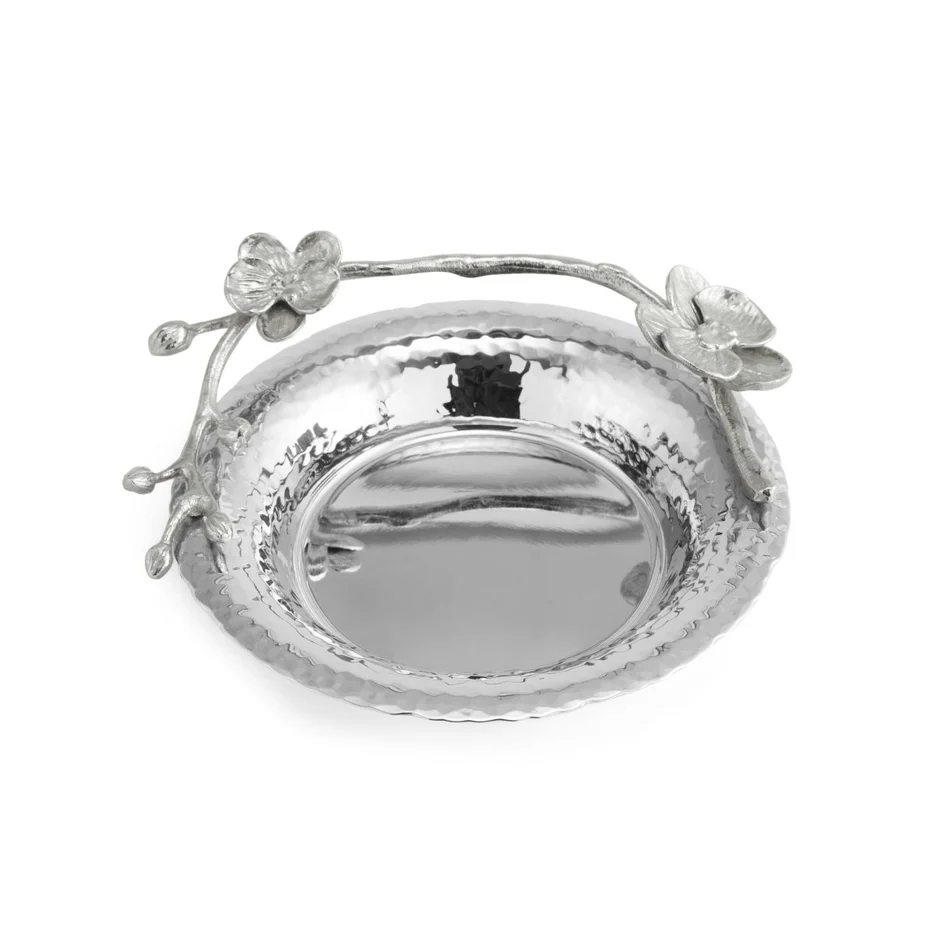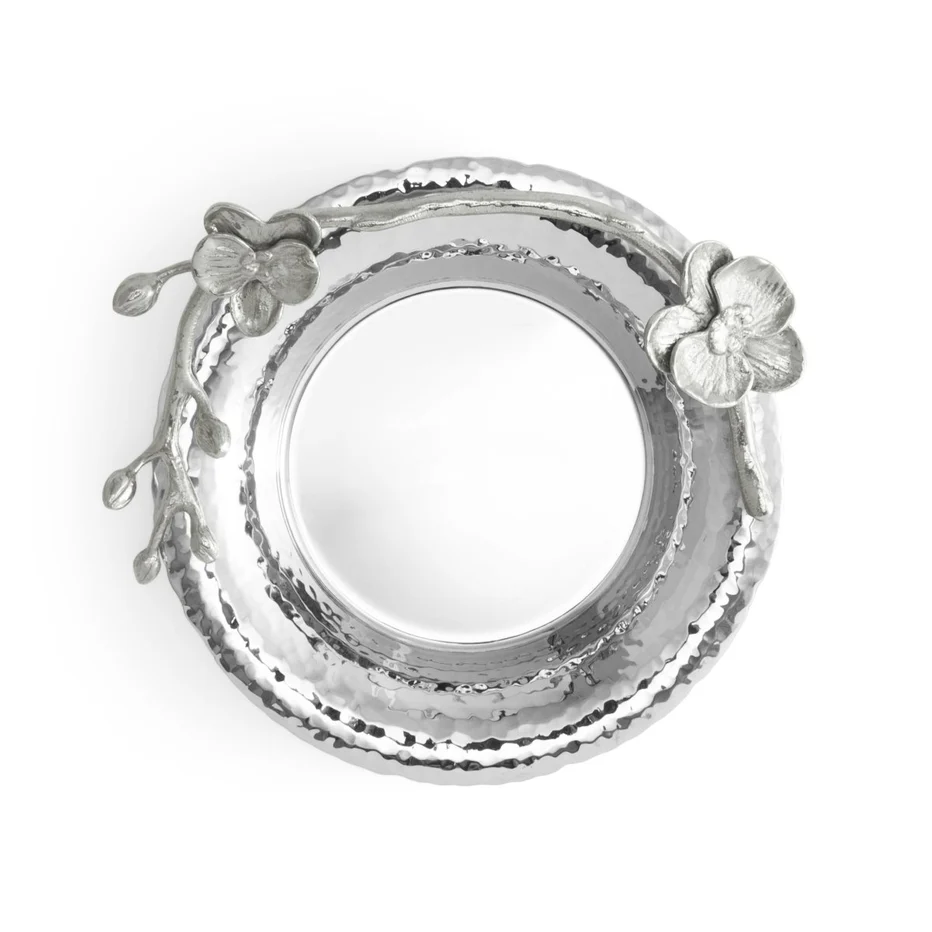 + Free ShippingThe White Orchid Wine Coaster exudes refined elegance, capturing the purity and grace of the orchid in a sculptural, handcrafted form. Meticulously crafted in stainless steel and nickelplate, with a soft black felt base, its serene design evokes the quiet beauty of new beginnings. A luxurious accent for any table.