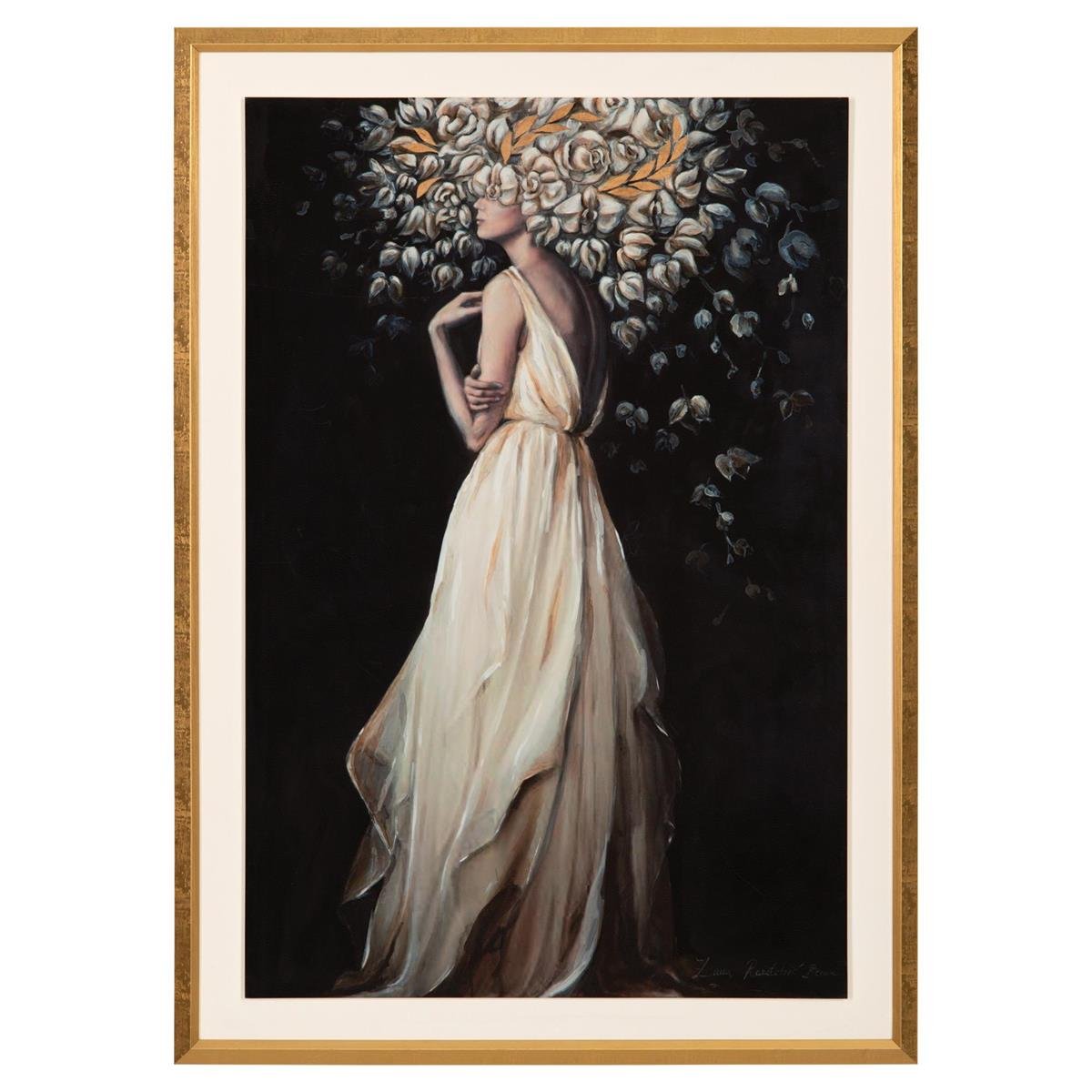 Blush and grey tones are striking atop the ebony background. This stunning work from artist Zana Brown is displayed under glass and surrounded by a gold molding. This piece is available in the John-Richard Custom Art Program. Please contact your sales representative for more information.
